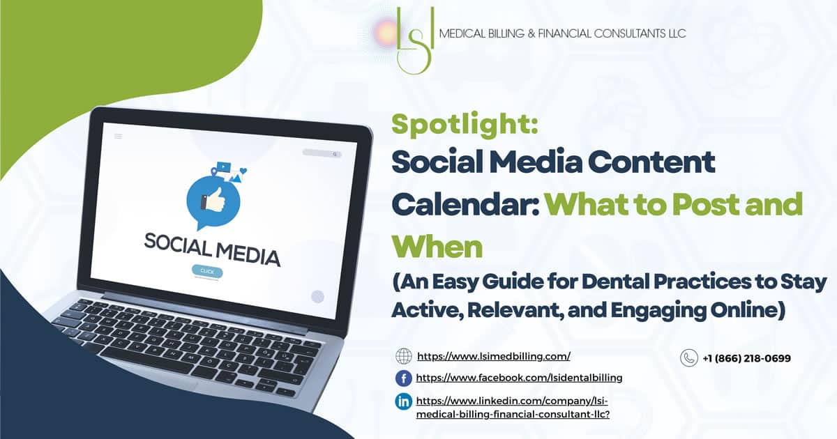 A social media content calendar keeps dental practices engaging with testimonials, behind-the-scenes clips, dental tips, team highlights, promotions, and interactive posts. Post 2–3 times weekly, using free tools like Canva and Buffer for efficient planning and scheduling.